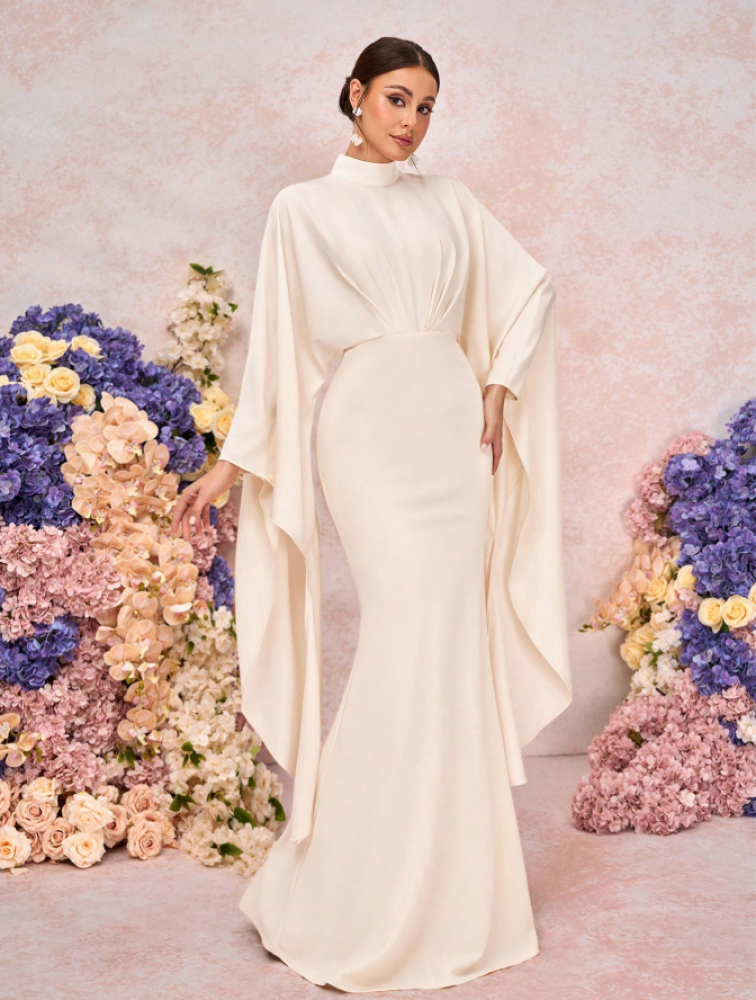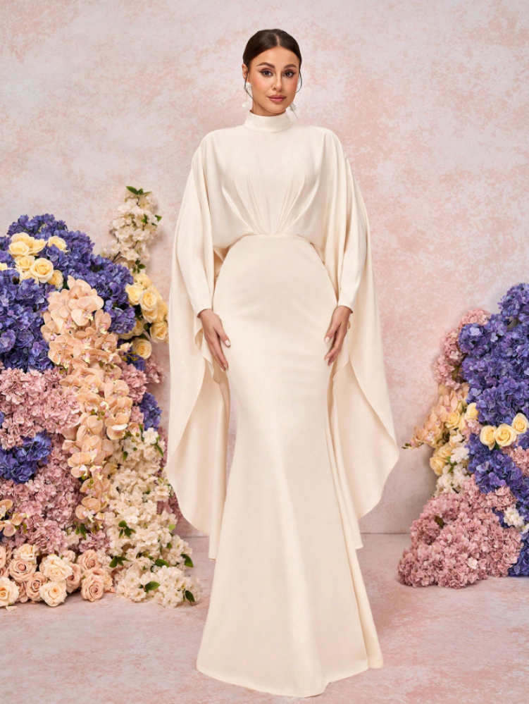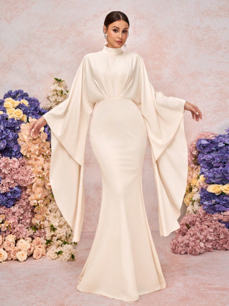 فستان بأكمام واسعة من SHEIN Belle يقدم لكِ مزيجاً من الرقي والأنوثة بتصميم مميز مثالي لخادمة العروس أو للمناسبات الراقية. يتميز بياقة على شكل قلب وأكمام طويلة واسعة تضيف لمسة درامية أنيقة تعزز من جاذبيتك بأسلوب عصري ومحتشم.